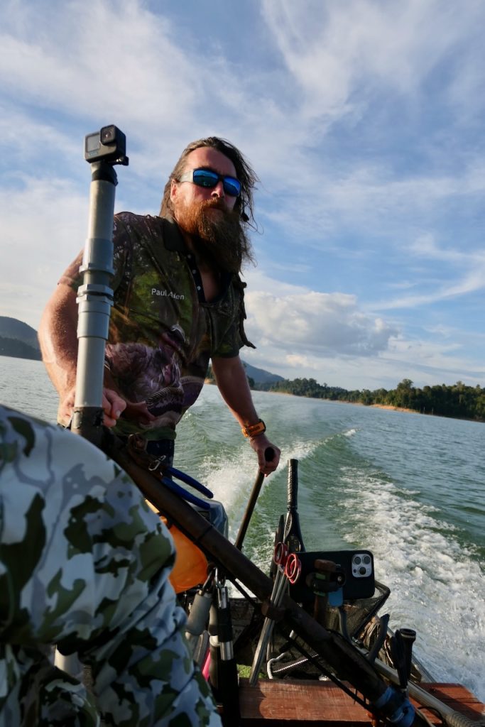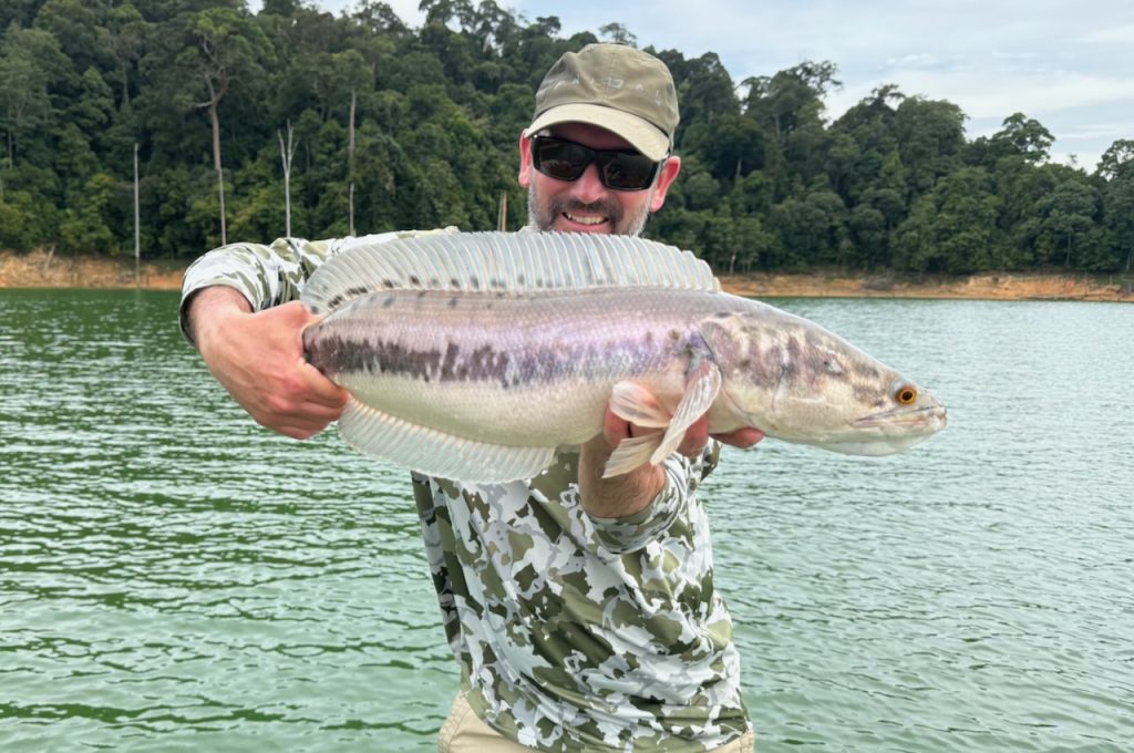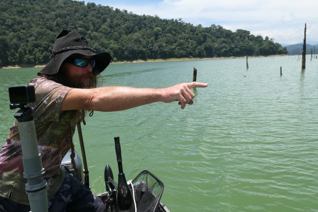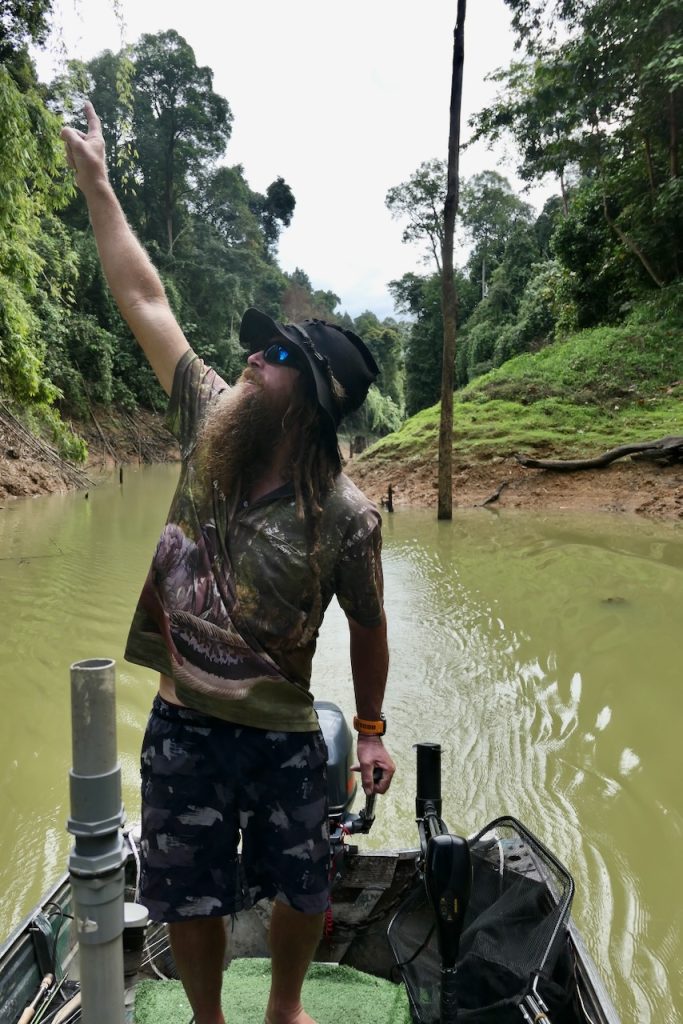 Like many great fishing locations, sometimes it’s important to look around you. This is an area of wild, dense rainforest and immense beauty. There are elephants, lots of them. We saw fresh sign every day. There are tigers, not many but they are around. A large paw print was found near Belum resort just recently. Birds, frogs, lizards, pigs, monkeys are all present and now and again we see them. Paul’s method of hunting out snakehead involves constantly moving. We’re travelling along shores for kilometres or moving quickly across open water to search new ground. The whole time getting to see many facets of this beautiful wilderness or listening to the occasional crash or trumpet from an elephant or a screech from a monkey. The sounds can be as dramatic and the visuals.
