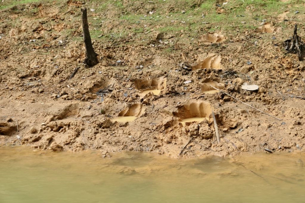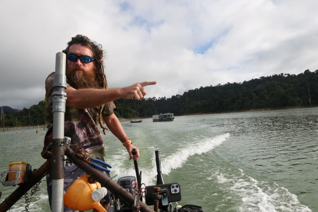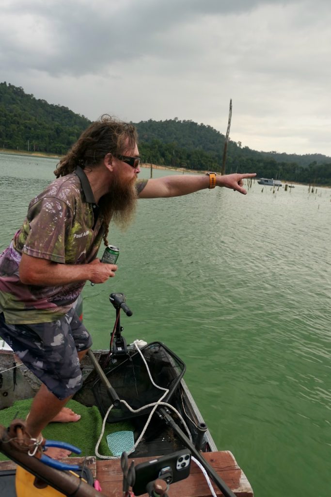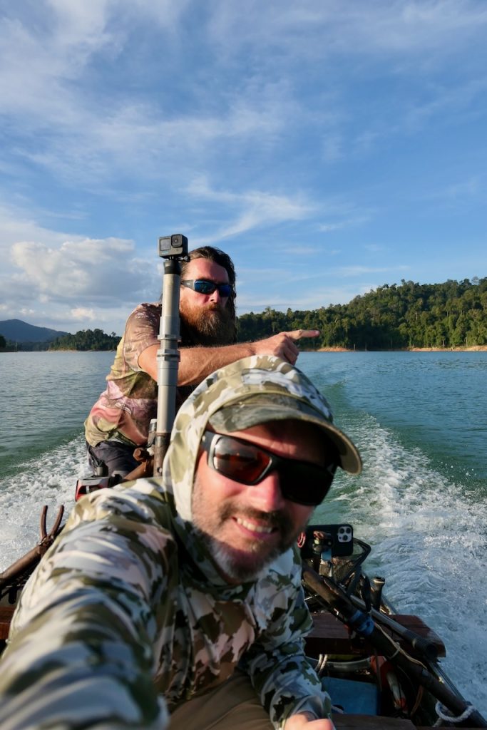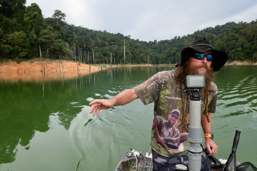 Like many great fishing locations, sometimes it’s important to look around you. This is an area of wild, dense rainforest and immense beauty. There are elephants, lots of them. We saw fresh sign every day. There are tigers, not many but they are around. A large paw print was found near Belum resort just recently. Birds, frogs, lizards, pigs, monkeys are all present and now and again we see them. Paul’s method of hunting out snakehead involves constantly moving. We’re travelling along shores for kilometres or moving quickly across open water to search new ground. The whole time getting to see many facets of this beautiful wilderness or listening to the occasional crash or trumpet from an elephant or a screech from a monkey. The sounds can be as dramatic and the visuals.