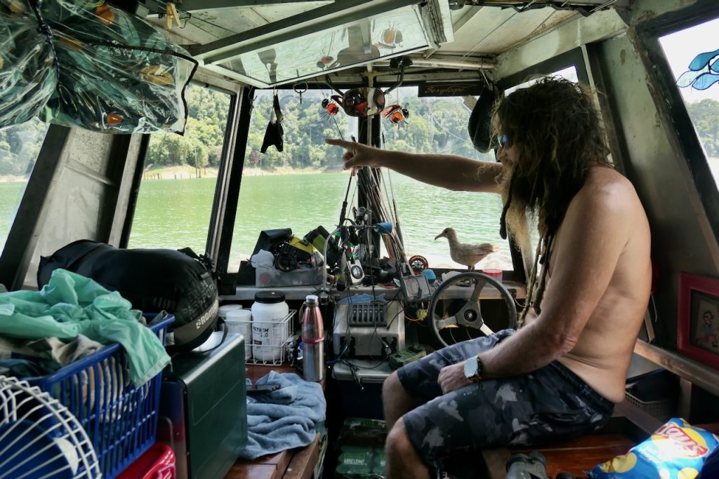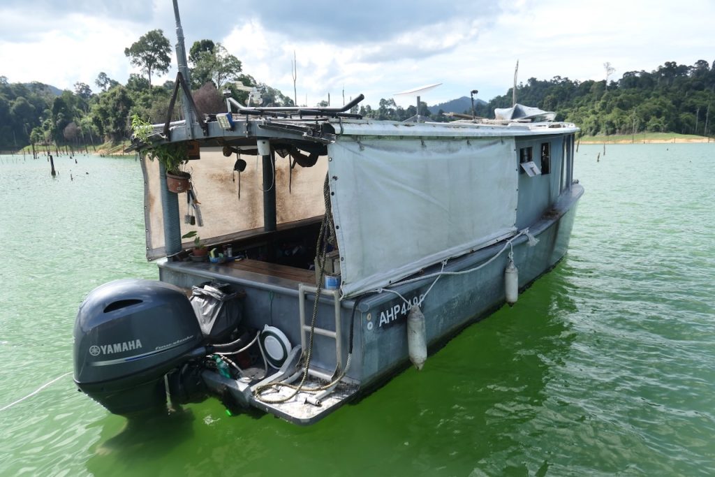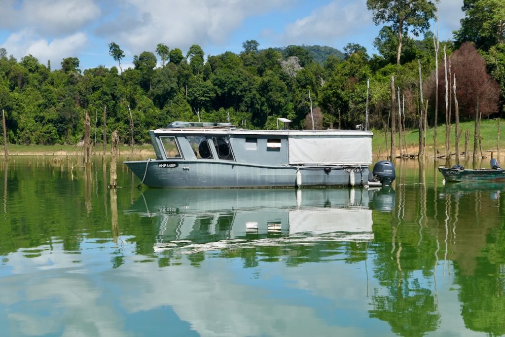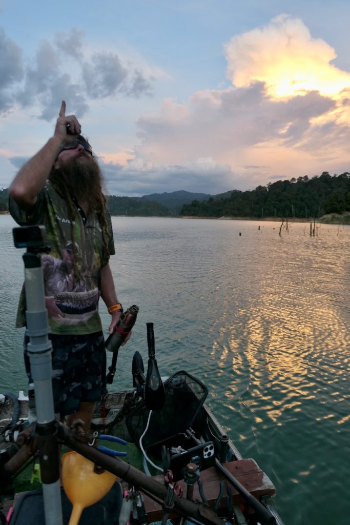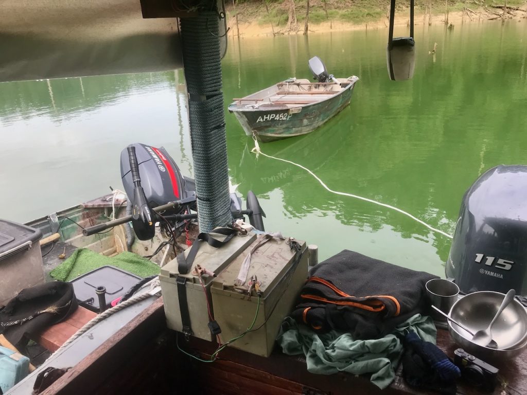 My 3rd trip. Paul picked me up in Penang and after a couple of hours we were hauling bags, beer and petrol down the dilapidated Belum steps. The steps are long and steep, dark, very degraded and dodgy as feck, but it’s a rite of passage. After a number of trips up and down the steps of doom, Paul took the Rocket C across the pitch dark lake to the Battleship. From there we motored down the lake to make base – two boats in tow. It was so good to be hanging out with my great friend again. Like no time had passed since the last time – which was 7 years ago. Time really is flying by. We caught up with some fine wine, French potato hotpot, beer and a little rum. The craic was great as we chatted about old times and current.
