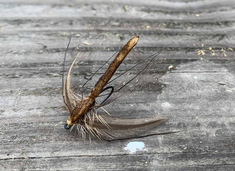 Warm days, where the daddy long legs are most active, with a little wind which blows into the river, blind fishing an imitation can be really good. I don’t keep the imitations in my box year round, but I stick in a few over summer.