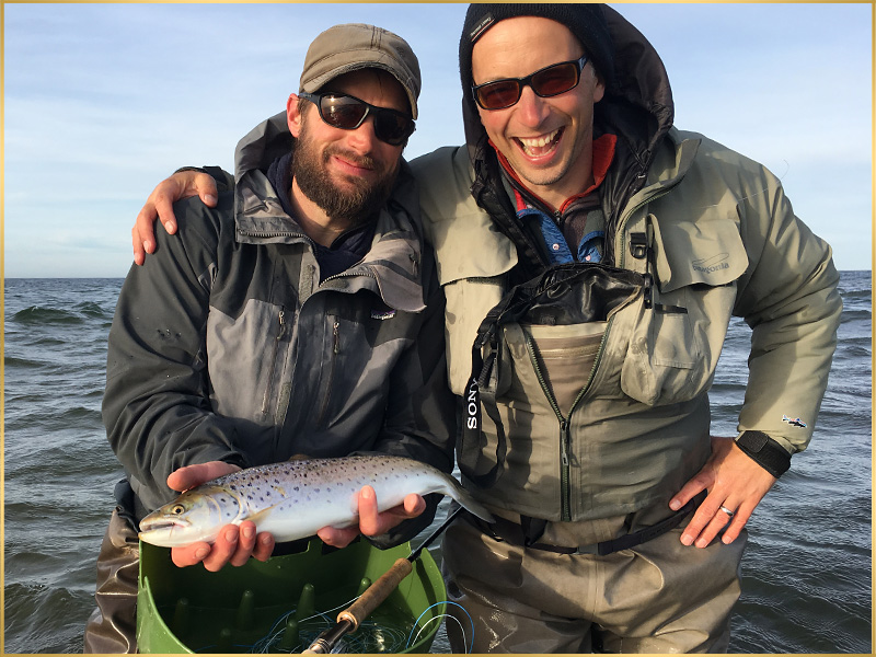 Most fly fishermen think to imitate the natural food of the Sea trout. I believe this to be a misunderstanding often. In my experience Sea trout only eat from time to time (short periods in cold water), not even every day! But we always have a fair chance to catch them by getting them curious or provoking a reflex. So there are a lot of different strategies that may help you to succeed in catching a Sea trout. What is important is, that you have a serious strategy and understand how and why it works best for you.