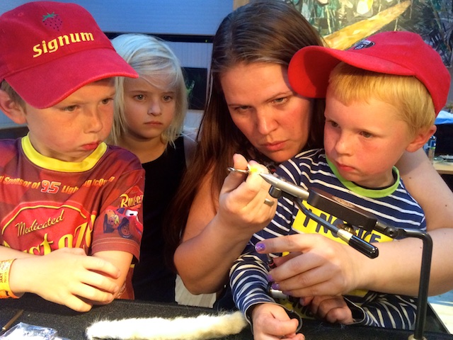 Kids do love this too. They really got engaged and added level of complexity to the tying. Having a group of genuinely interested 4 to 8 year olds literally crawling all over you, makes tying even a simple fly a challenge. Definitely an enjoyable moment to remember.