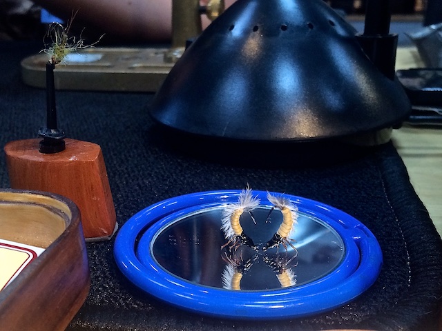 Tying at shows is something I have done since several years. It is really a lot of fun and I am glad that am given the opportunity. It is funny how the time flies when one sits there and can talk „shop“ all day. Encouraging and inspiring.