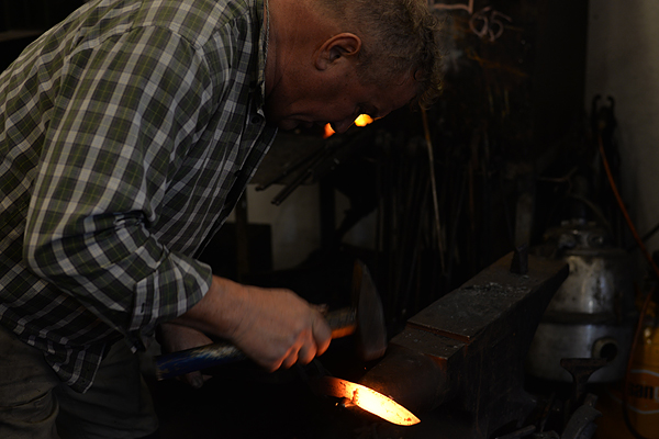 For now, I'll show you a picture during the forging process - taken as the billet of pattern welded iron and steel was being forged into the overall, final shape of the knife.
