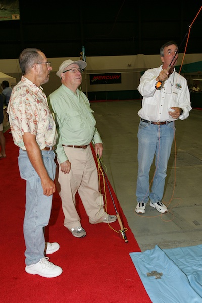 Later on, I was actually lucky enough to assist him at a demonstration he did at the IGFA. By then I was pretty well versed in his routine, and as usual, at one point he laid out a long line behind him, then cast it by balancing the handle over a finger of one hand and cast the entire length by rotating the rod over with two fingers of the other hand on the fighting butt. After his demo I asked him if a “speed up and stop” was important, how did he make that cast as there was obviously no way to stop the rod? He just looked at me with that smile, and winked.![]()