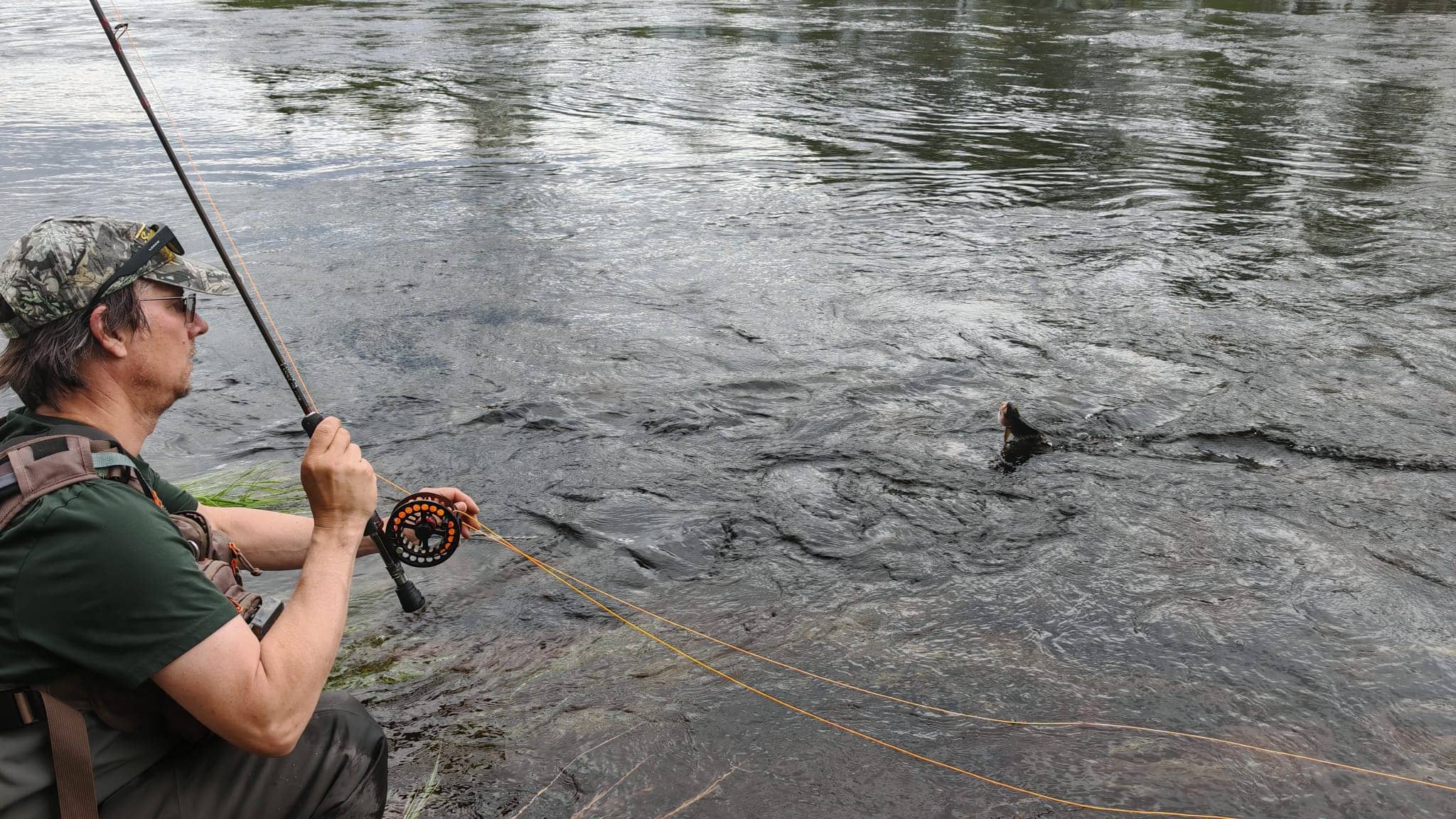 I caught 2 graylings and we spent some time to figure out how we could fish other side of river.  We found lot of rising fish, as usual on other side. Lot of fish in small area, first Stefan tried to wade in spot that he could cast, as he didn't know river and with high water impossible to see bottom he had to give up.