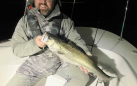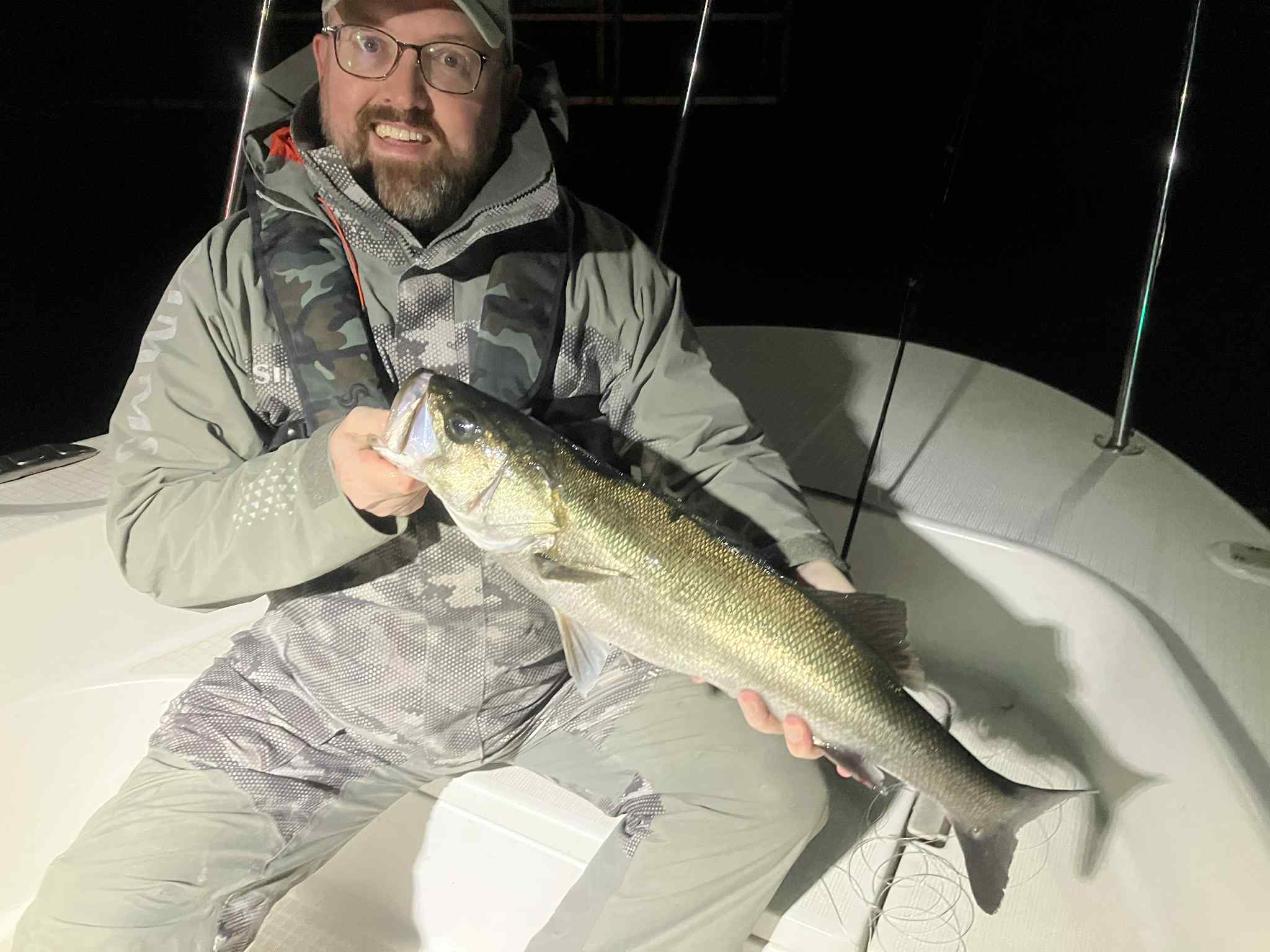 So after a slow first night, we were hoping for more action the following week. It was a bit windier, the tide was better and the shad run is now in full swing. We didn’t get much more action, but we did get a couple of good ones pushing 70cm. We bounced a couple of bigger fish on 9” jerk changers too, the problem seemed to be they were hitting on the pause which was making it hard to get the single hook in them, or maybe they were even missing the hook altogether, even the biggest bass don’t have a mouth like a big pike or musky. A switch to a normal gamechanger with 2 hooks made the difference. As the night continued the wind got a bit much so we mover inshore and fished more standard patterns (I predictably went for a rubber candy) around the lights which is usually a bit of a numbers game with cricket scores of 18–24-inch fish being the norm. Not so for us, just a few of them and loads of the babies that we struggled to avoid. It’s odd but at least the volume of small fish bodes well for future seasons. Especially as even the couple of “normal” fish we picked up were in very good condition.