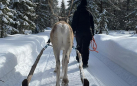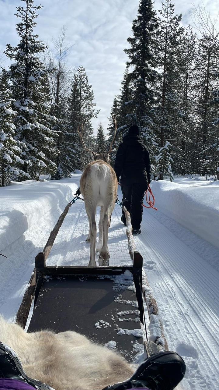 We are training/teaching young male reindeer to pull sleigh and I have been test driving them. One of the best things man can do with pants on.