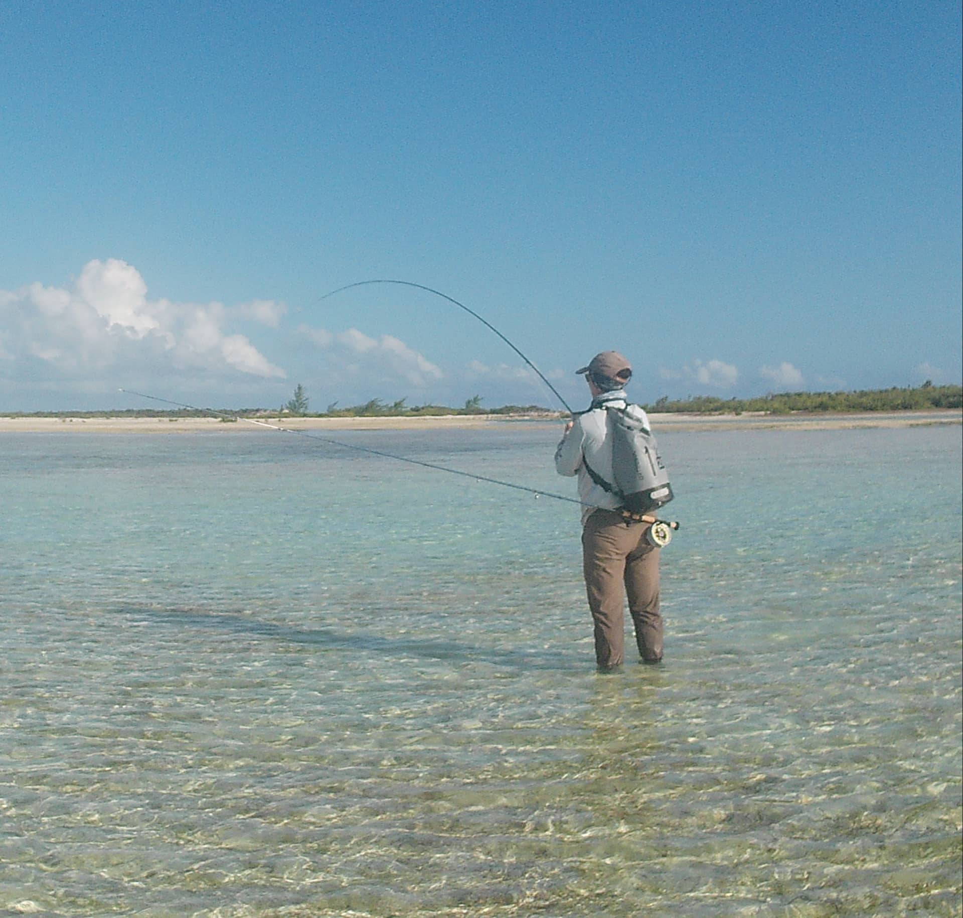 When I saw the O'pro I thought it was ideal, so much so that I bought a second one for Tracy to use. The one that arrived for Tracy is a subtly different design which I will come on to. Anyway, how is is that I'm sat in glorious sunshine writing a FP rather than fishing? Well, yesterday we'd waded out to where we intended starting fishing and I clipped the #10 weight into the O'Pro that was on my belt. After just a few minutes wading I noticed that the rod tip was pointing dangerously low, the O'Pro allows for the hold angle to be adjusted so I reached round to my back to make a change only to find the O'Pro hanging off my belt. One of the clips that holds the device to the belt had failed thus the whole lot was pivoting on the one remaining clip. I was a little frustrated as I thought I had a really good solution for the second rod only to find that the rigours of two weeks of flats fishing was too much for it. I therefore removed my belt, adjusted the straps on the back-pack and went back to my old method of pushing the rod through the straps for the remainder of the day.
