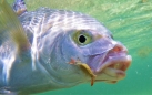 Over the week conditions were stable, scorching and not too windy with decent visibility most days. Luckily we missed the typhoon that struck 2 days before I got there. Hiromiki arrived 1 day early, eager to get started on his first saltwater trip. He managed to hook a trevally before we arrived but suffered, as many trout anglers do when they first hit the salt, a broken tippet and a bit of a shock at the power of a decent saltwater fish. Unfortunately, Miki had tied boxes of flies in preparation but hadn't practised casting very much and struggled to get shots of quickly enough for the cruising bluefin and yellow spot trevallies that were showing up frequently. I wonder what percentage of people making the switch this happens to, I bet it's high. It was a week of tough lessons for Miki really, from casting to footwear issues to bad hook choices-cheap hooks won't do it for triggers. Fortunately he caught enough snapper and emperor to keep him interested and did catch a nice brassy trevally around 70cm on his last day, he's hooked and will be much better prepared for his next trip.