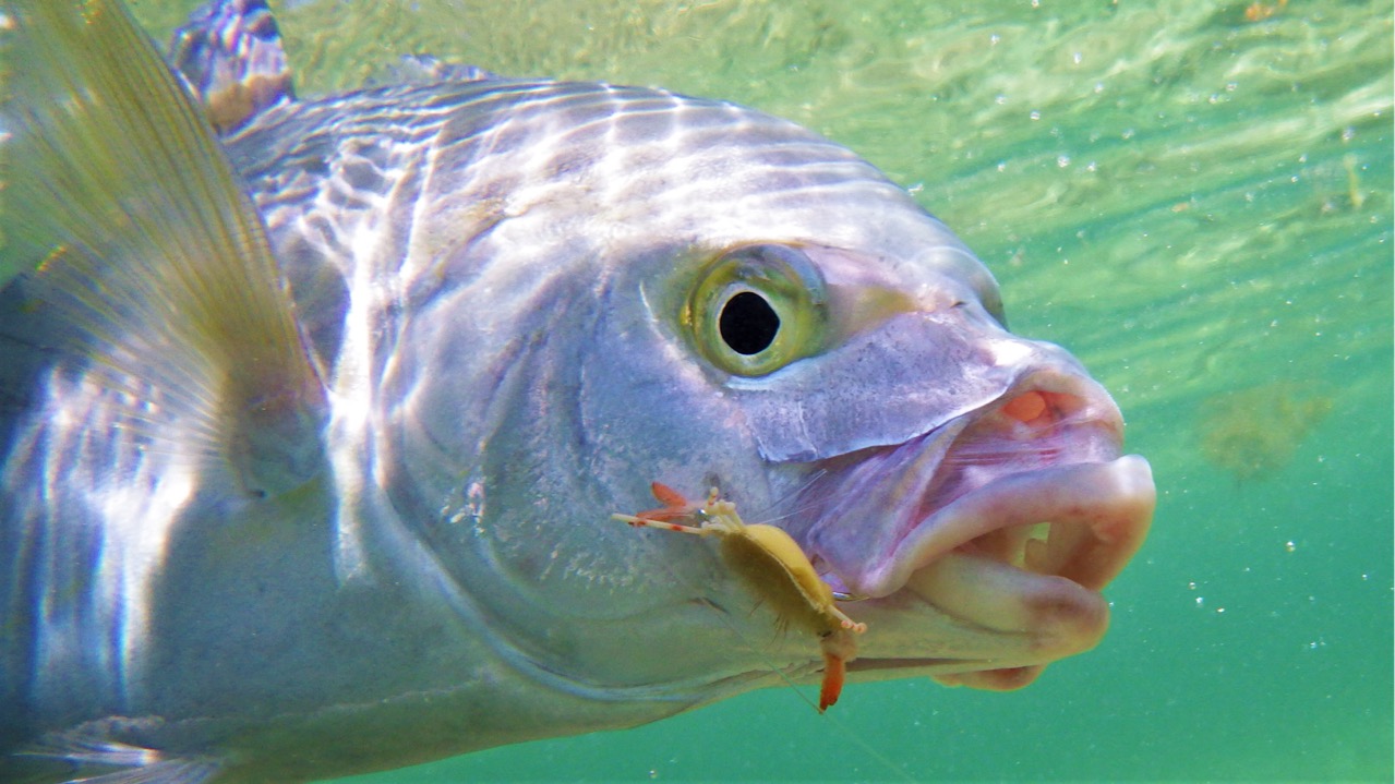I had a very enjoyable week, with lots of yellowspots seemingly eager to eat my crabs and clousers. While there weren't any really big fish, it's still a lot of fun to make those quick presentations and get the eat, even from 6lb fish. It's the shot and eat that I really enjoy most, and I definitely benefitted from having learned Paul's snakehead shot.I caught several trevally that appeared from the glare or became visible after passing cloud that I wouldn't have had time to catch if a false cast was involved. It's a great cast to have if you do any kind of shot fishing. As the week went on I was seeing loads of triggers, especially as I got more keyed in on what the look like subsurface. The shallow tailers were incredibly spooky and I think all but one spooked as the fly landed, even on "good" soft landing shots. I had the most eats from cruising fish that could be lead a fair distance, or those fish that were tailing in water deep enough that they were fully submerged. The deep tailers seemed particularly aggressive, often eating the crab before it reached the bottom. Sadly, the features that make the trigger population so high, also make it very difficult to land them and should the eat be successfully converted to a hooked fish the chances of being cut off on the reef or the fish finding a hole to hide in are very high, even with a 20lb tippet. I had eats from probably 20 titans, hooked up with about 9, but landed none on this trip- I was in danger of runnning out of velcro crabs and only one made it home. I love triggerfish but I hate them too. The silver lining is that I had no crushed hooks, so have found the hook for these fiends, the Gamakatsu SL11-3. It's the one. On the last day, with a good tide and having seen some GTs the 2 days before, I decided to have the #12 in my hand for most of the day I only had a half shot at a nice fish that was swimming the wrong way but still enjoyed the day.