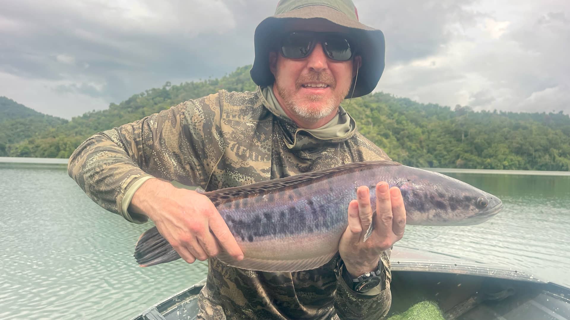 Hong Kong. We had three days Snakehead fishing where Ben landed two adults. Ben also had a few shots at Gourami. After that we headed up Sungai Tiang for the Mahseer. Unfortunately we were extremely unlucky with the weather and evening thunderstorms blew out the river and it didn’t clear until late afternoon the next day and even then not fully. Consequently there was a lot more instructional time than there was successful fishing. Ben had a great time despite the conditions and plans to return.