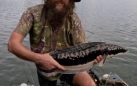 Dirk was visiting with a friend for three days. His friend, Heinz, wasn’t really a fisherman, so Nick from Tacklebox Adventures had loaned him a spinning rod. Dirk set it up and simply cast it out once into the lake to show Heinz how to use the fixed spool reel. And, one in a million, a fish came from nowhere, possibly from another dimension, and immediately grabbed the spinner. I zipped over to take the photo.