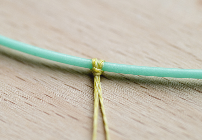 With a needle or something else suitable through the spliced loop, tighten the splice.