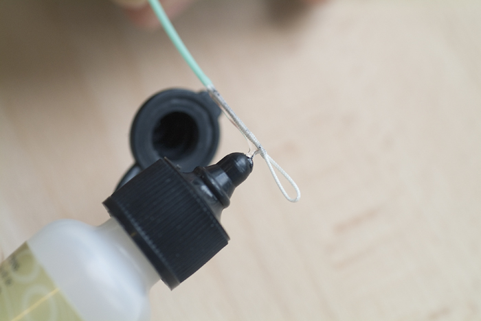 Snip off the waste end and apply glue, and set the glue with the UV torch.