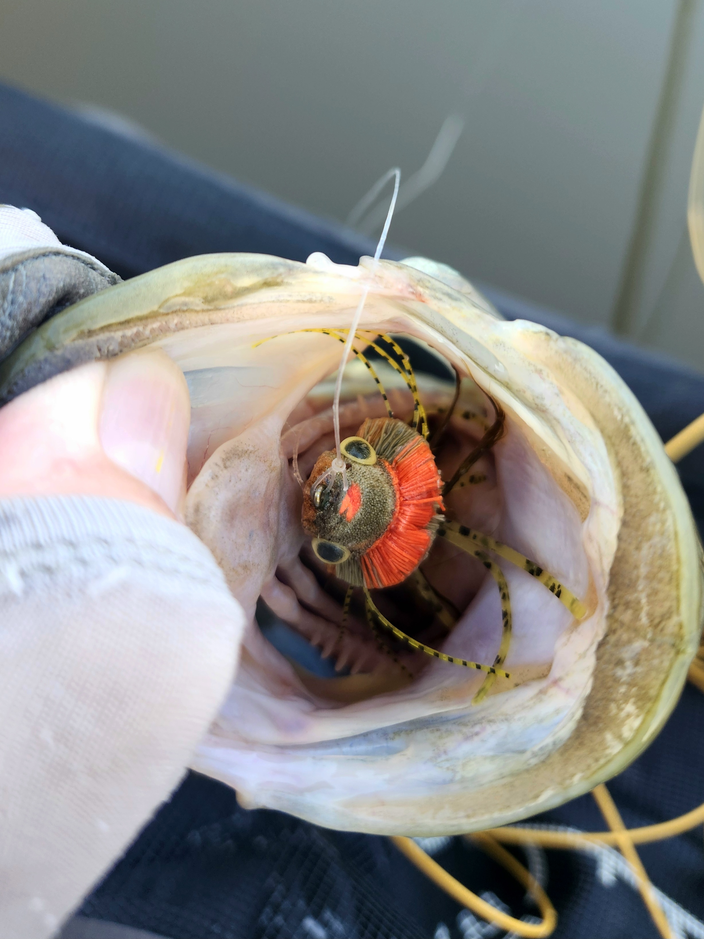 A few yards down the bank, an ambitious bluegill tried to eat my fly, so I cast the Dahlberg into open water behind me and picked up the 3 weight, caught a few gills on the popper dropper before picking up the 8 and moving on. This happened a few times and was relatively entertaining, but I was still hoping for another bass before it was time to call it a day. Then a few minutes after releasing some bluegill and A bas started chasing one in the area I’d just fished. I put the Dahlberg over it and gave it a long draw to push it sub surface and hooked up immediately. Unlike shad and mullet, bluegill can handily be imitated with a frog themed fly which was good for me and there was no doubt he wanted it as the hook was so far back, I had to get the forceps out to unhook it. Shortly after I decided it was too bright and it was time to head back and see how Chuck was getting on. We had a bit of cloud cover so I put on a streamer and worked the bank on my way. I didn’t really expect much and really it was more to keep the long paddle back interesting. I found Chuck not far from the put-in just as he hooked up with a catfish. He’d not had any bass or bluegill but was running amok on cats and some silver fish called wadaka, that are a bit like roach. After the topwater bite had died off, he started fishing a little unweighted leech pattern, casting it tight to structure and letting it sink before creeping and twitching it back out. Once he landed the fish, we called it a day. Not huge numbers of fish, but a nice start in a new area. We might head back this week ready with something more suitable for the shad herders, but it’s also looking pretty carpy or even smallmouthy recently so we’ll see.