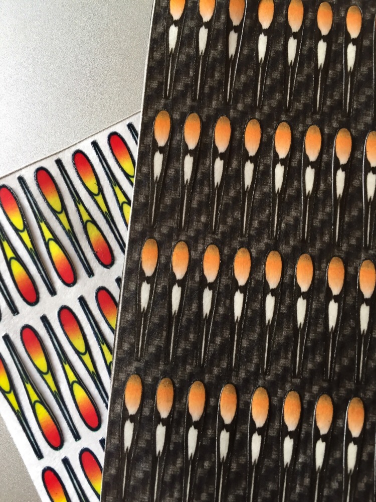 Because a fellow Dane, Morten Bundgaard, who runs Pro SportFisher, has released his Generation 3 Jungle Cock. And that's artificial jungle cock! His first ones were nice and looked pretty much the part - good enough that I used them a lot. They were printed on a waterproof paper that was very strong, but white. Didn't *really* matter, but I always ended up tinting the back with a waterproof marker, and that was fine. Then came his Generation 2 which were not jungle cock imitations, but "eyes" and they were and are really cool as they come in all sorts of colours.