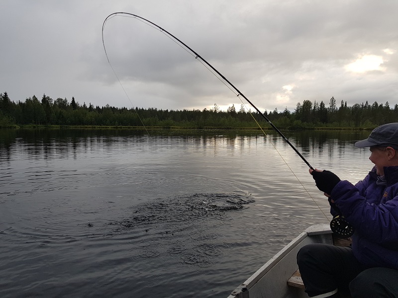 First of all last Sunday was nice. I was able to teach casting and flyfishing basics to couple who has been kind of dreaming about flyfishing but haven’t got change to learned before. We had good time and trained casting on field with audience. This audience is quite normal in our field. Group of reindeer came to say hello and then lay down and see how casting is going. It was heavy wind but after one hour, casting was on the level that we decided to go fishing. It is funny how people seems to ”forget” casting when they start fish. It is probably there is so many new things coming, wading, fishing teqhnique and fishes with bites and strikes. Anyway they were able to catch some fish and also we could try dry flies. It was difficult decision about fly because there was several different hatches going at same time and we saw active graylings. We hit few right flies and got some beautiful rises but guests couldn’t hook….. they were too suprise about what happened.