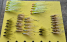 I started by topping up with white/chartreuse Clousers as these are as easy as it gets to tie. Rather than rib the hair with tying thread and then epoxying it (as per the standard pattern), I use a flashy flat braid to form the body. I do this because I feel the original tying is a little vulnerable to the teeth of most of the species that we'll be chucking Clousers at – various snappers, jacks, needlefish, ladyfish and cudas. My flies still suffer mind you, but I do feel they're a little more resilient the way I tie them. Being as I didn't really have bonefish in mind for these flies, I tied them quite large – on a size two hook and with an overall length of around five inches. These still cast well on a bonefish outfit although we do beef up our leaders to help turn them over. Obviously for cudas we add some wire bite tippet – usually AFW. A four or five pound cuda on a bonefish outfit is great fun, however we do have our #10 weight outfits in reserve for the bigger ones who want a budgie sized fly. That said, the biggest cuda that Tracy hooked last year took a Clouser on her #7 rod, or rather it took the ladyfish that took the Clouser – that was easily a 20lb plus fish.