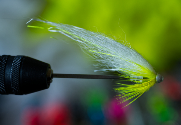 And then white - I love white in the same conditions. Wiith flash and a bright coloured hackle. Koch’s Ghost is my favourite fly and born with an orange hackle. I’ve recently begun tying them with a fluorescent yellow hackle and that seems to work as good, if not better. In the early season my friend likes them with a blue hackle. I caught my personal best river sea trout on a size 8 Koch’s Ghost. 12-14 pounds in a 1,5 meter wide river.
