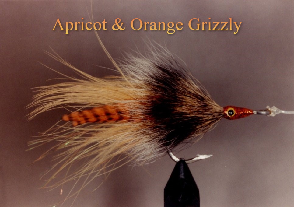 The Apricot And Orange Grizzly is another one of Bubba's variations on a traditional theme. The Grey Squirrel collar gives it that traditional keys style "look", while the addition of the apricot maribou and apricot flashabou, along with the copper Krystal Flash head add a couple of not so subtle upgrades to the traditional tie.