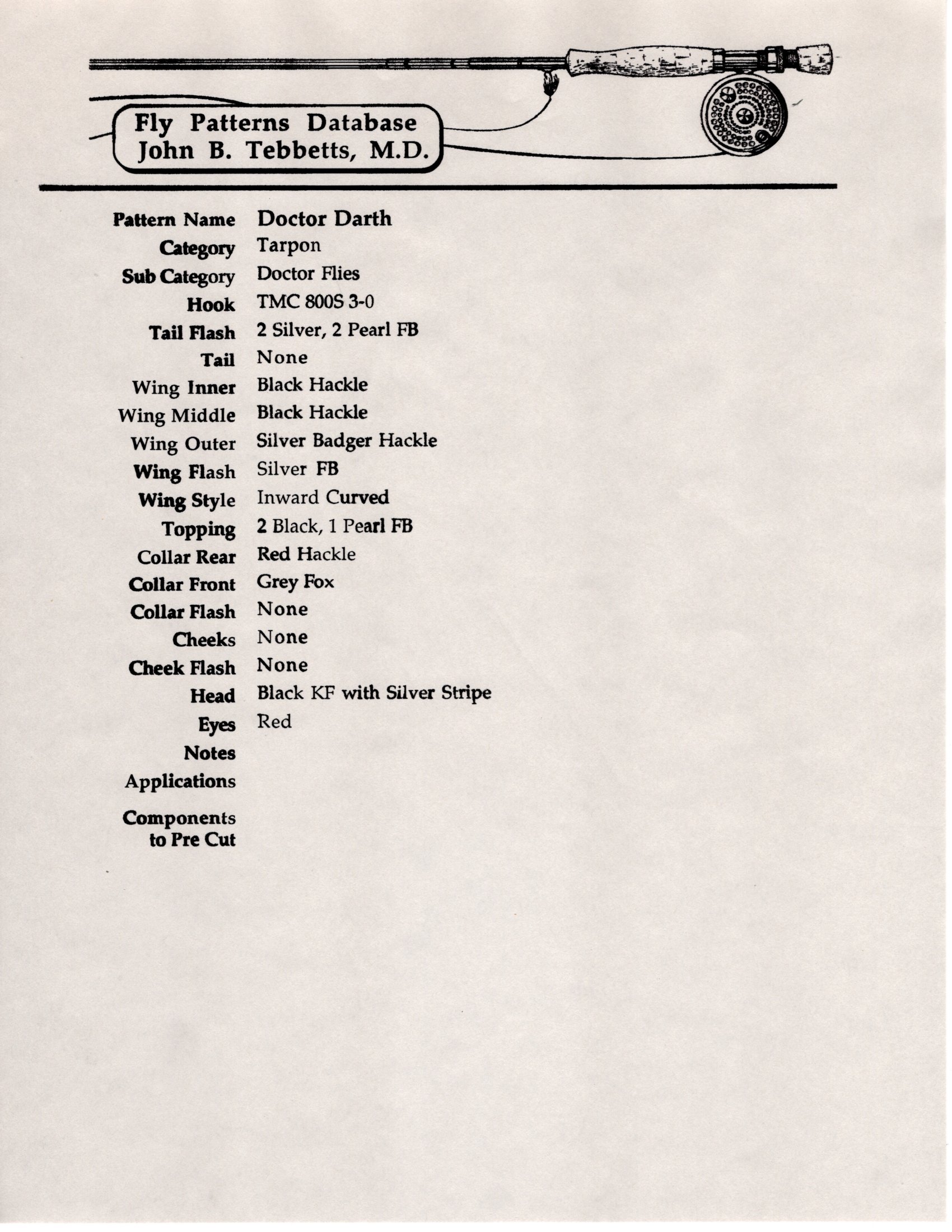 Of course, this pattern can be tied in any number of effective color combinations, but what gives the Doctor Darth its unique flair is the Badger hackle and the multi-layered collar.