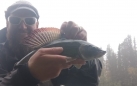 I go back to the car and have lunch. I can warm also, rain has started again and mist is getting even thicker. I go see one new spot and current. It looks really good but with this high water impossible to fish well. When water is lower it will excellent spot for huge graylings, note to remember for next trip.