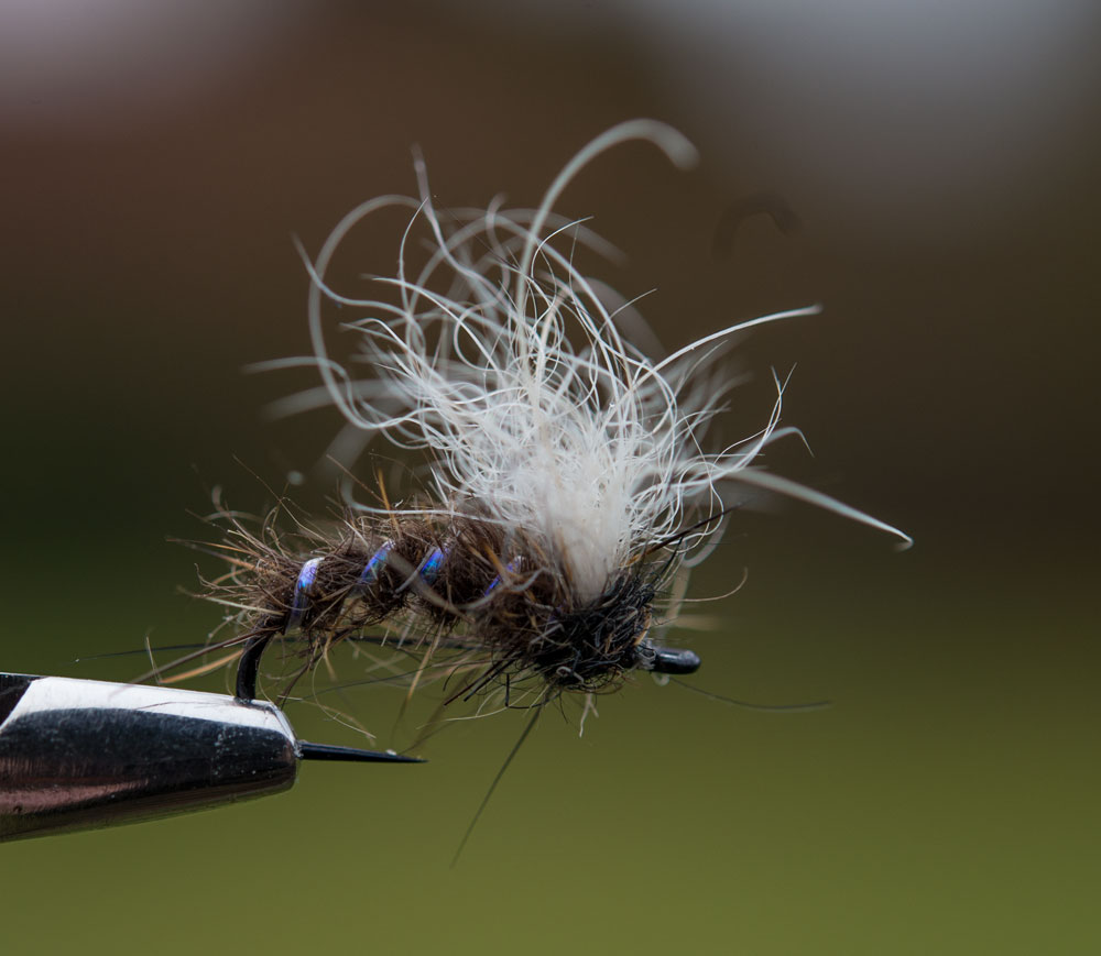 There's a fly. Rackelhanan, by Swedish dry fly legend, Kenneth Boström, which is tied entirefly from poly yarn, and it's a magnificent fly as you can pull it under to let it pop up on the surface again, mimicking sedge behaviour as they oviposit.