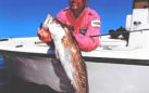 As the sun climbed and the temperature rose I began to become envious that my clients were wading back to the boat to replenish themselves with food and drink. I had only two bottles of water and a few candy bars to hold me over. Each time I felt compelled to wade back to the boat, I reminded myself of the personal best I was chasing. In spite of the severe fatigue, borderline heat exhaustion, muscle cramping I decided to push ahead. My fingers were now blistered and bloody from the line racing through my fingertips from each run. At approximately 5:15 pm I landed the final redfish of the day and called out to the other anglers "Number 41". As we waded back to the boat, large Redfish continued to ram into us as they swam between our legs and through the lineup of anglers. My 4 companions had been beaten and battered as well. Between the 5 of us, we landed 126 Redfish. This number does not include the “accidental” black drum or Trout we caught. Nor does it count the dozens of fish we lost and broke off.