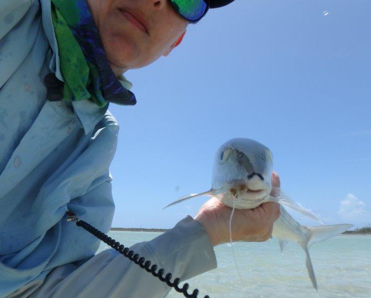 Latest from our flats trip – having caught a really nice sized bonefish, about 7 pounds, that tailed on my fly and ran taking backing three times, I wanted a photo of it, but James was too far away. So I took photos of it balanced on my foot (with the rod as an indication of length) and decided that I needed to work out how to do a selfie with my camera for next time. Yesterday I found myself again with a bonefish and James nowhere near, so I tried the selfie mode. Other than myself not quite being in the photo it worked reasonably well. I’ll try better next time… if there is a next time.