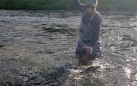 After lunch people will keep fishing downstream. 600 meter excellent water for dry or nymphing. I go with raft boat to pick up place and we have some time to fish that on straight. You can see graylings on your feet and they are nice size. Paul know this spot also, he almost fished right spot once.