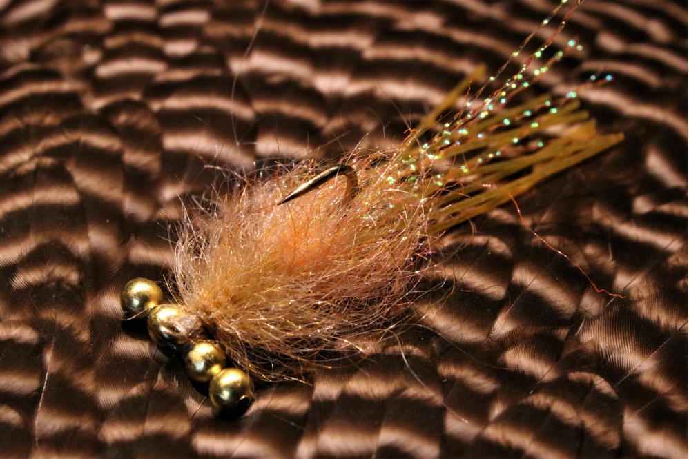 Unlike most crawfish patterns it has very few tying steps -5 in total- making it nice and quick . The materials are cheap and readily available, aside from hook and thread all you need are bead chain, rubber legs, some crystal flash and a long fiber dubbing. When properly tied, it's tough ideal for fishing around rock walls and structure, pilings, concrete around dams, flood defenses and will last many many fish. It always lands the right way up. It's just great. The only downside is that it might be marginally snaggier on rip rap than some other patterns, but not that much, It could be fixed by cutting off the extra bead on either side, but that would reduce its stability sitting in current.