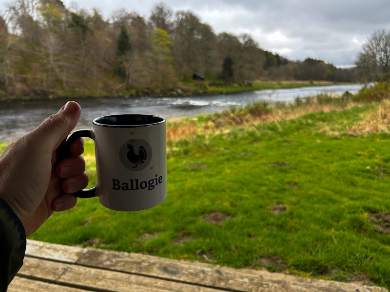 A couch for a nap and chairs and table to keep things civilised. Our grille was Sean Stanton, whom I can thoroughly recommend. He know every inch of Carlogie and Ballogie. The season over there is 225 days and he’s in the water every day. He’s very service minded. If you’re not fast, he’ll grab your rod and you won’t get it back until you’re in the river, ready for the first cast. I’m not really comfortable with that, but his knowledge and guiding gave a 5 years head start in understanding the pools.