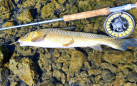 After coming back I decided to go and check out a river I'd left alone for several years because there was a lot of major construction work that basically ruined it. Hawaiian dave and I used to fish it a lot and it was one of the better smallmouth bass fisheries around Tokyo. Clear water, not huge numbers but large bass that could be sight fished with topwater, streamers or crayfish patterns. A good day might have been 3-4 fish with the smallest being 3.5lb and your biggest pushing 5. Not many, but big. The construction work, was canalisation and a couple of bridges being built over several miles of the river and it just ended that smallmouth fishing. I wondered if it would have come back so decided to go and see. I didn't see a single bass, or a single bass angler which is maybe more indicative. But the upper stretch is now mde up of large sections of lovely flats and shallow pools that are full of carp and barbel. It was always a good carp river, but I think we'd become smallie blind and forgotten that. I set up 2 rods, 1 with a Dahlberg headed marabou minnow and another with a size 6 fat albert as we're right in the midst of terrestrial time and I was hoping to get a smallie on top from under the trees. Making my way downstream I saw a couple of barbel and put the dry in front of them, one came to it, but I think the fly was a bit too big for it. Then I saw a shape slightly down stream and put the albert in front of it and it was immediately sucked under. What I initially thought was a bass or small carp, quickly grew into a perfectly conditioned 11lber. Not what I was after, but certainly not bad. I persevered with the streamer in more open areas but other than chases from the barbel there was no action and as there were so many barbel around I switched to a crayfish patten and managed to catch a few of the aggressive barbel despite the fly being bass sized. I know people often refer to carp as golden bones, but the way those skinny water barbel chase down and eat a fly is far more similar to a bonefish. Really excellent fun. I also caught a few more carp on the crayfish pattern over the next couple of miles, but they were only in the 5lbish range. There are a lot of bigger carp there so I'll definitely be back armed with more carp and barbel appropriate gear. I just wish the bass would come back!