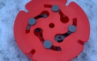 The other one off-set, so when you hold the first, the spool rotates freely, the other one acting as a winding handle. When the line is wound and you open the spool the pegs retract and the line is neatly coiled - twist free.