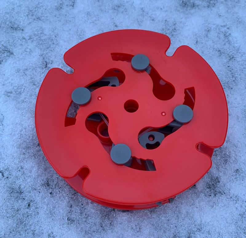 As the PoD shows, in it’s closed state it’s the same size as a normal fly line spool. As you twist it open, the pegs that the fly line rolls over retract, so you can get the line off after you’ve fitted a couple of pipe cleaners to keep everything neatly together. You can also see the two handles stored inside the spool.
