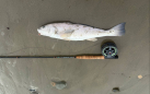 I continued my never ending quest for enlightenment and went back to the beach on Wednesday. The tide was right and my long bathroom emergency was behind me (not a hemorrhoid joke - there was really a leak). I acted on the plan I articulated last week “target anything that could possibly be a fish and will then learn better how to see all of them and only then how to feed them.” It turned out to be a pretty good plan, only abandoned in spots. I found that I see fewer fish as soon as I start to cast covering water. Looking and walking reveal more. Once my line is in the water, I stop seeing and find myself fishing the fly and am oblivious to my surroundings. I was blessed by periodic good light (unusual for SoCal mornings on the beach) and started seeing corbina. Signs included, fish bombing out of the shallows in 2-6 inches of water as waves recede, feeding swirls, turning swirls, backs in a variety of postures, nervous water and color, and divots in the sand marking a sand crab eat. I got better as the morning progressed. BTW all of these signs are nicely documented in Al Quattroichi’s short book, the Corbina Diaries. He’s got some great photos as well as sound tactical advice. If you’re out here and want to try this I suggest you read it.