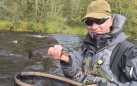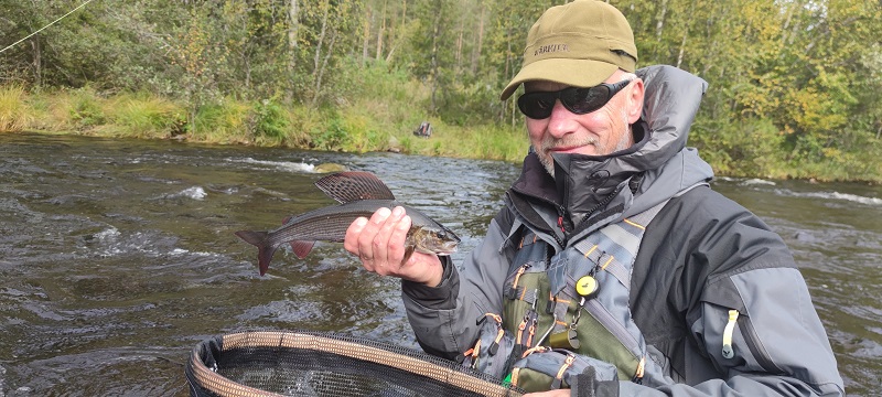 Monday was good fishing even there was not so many fish hooked. My guests had all the possible gears and he was beginner about flyfishing. He had basics about casting and had good sense about water. He just needed little push for water reading and casting. Fishing techniques you can learn only when fishing. We had really enjoyable day around flyfishing. He caught some graylings, weight on word ”some” as he would say.