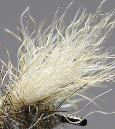 This material is simply insane - fibres from an arctic hares foot (or snowshoe as some call it) has something which seems "magnetic" for fish. It almost looks like glass noodles.