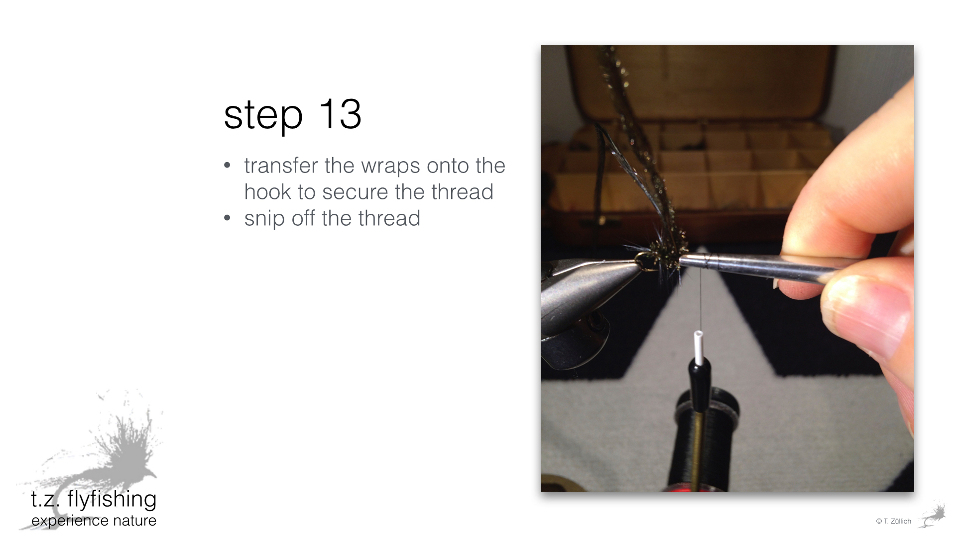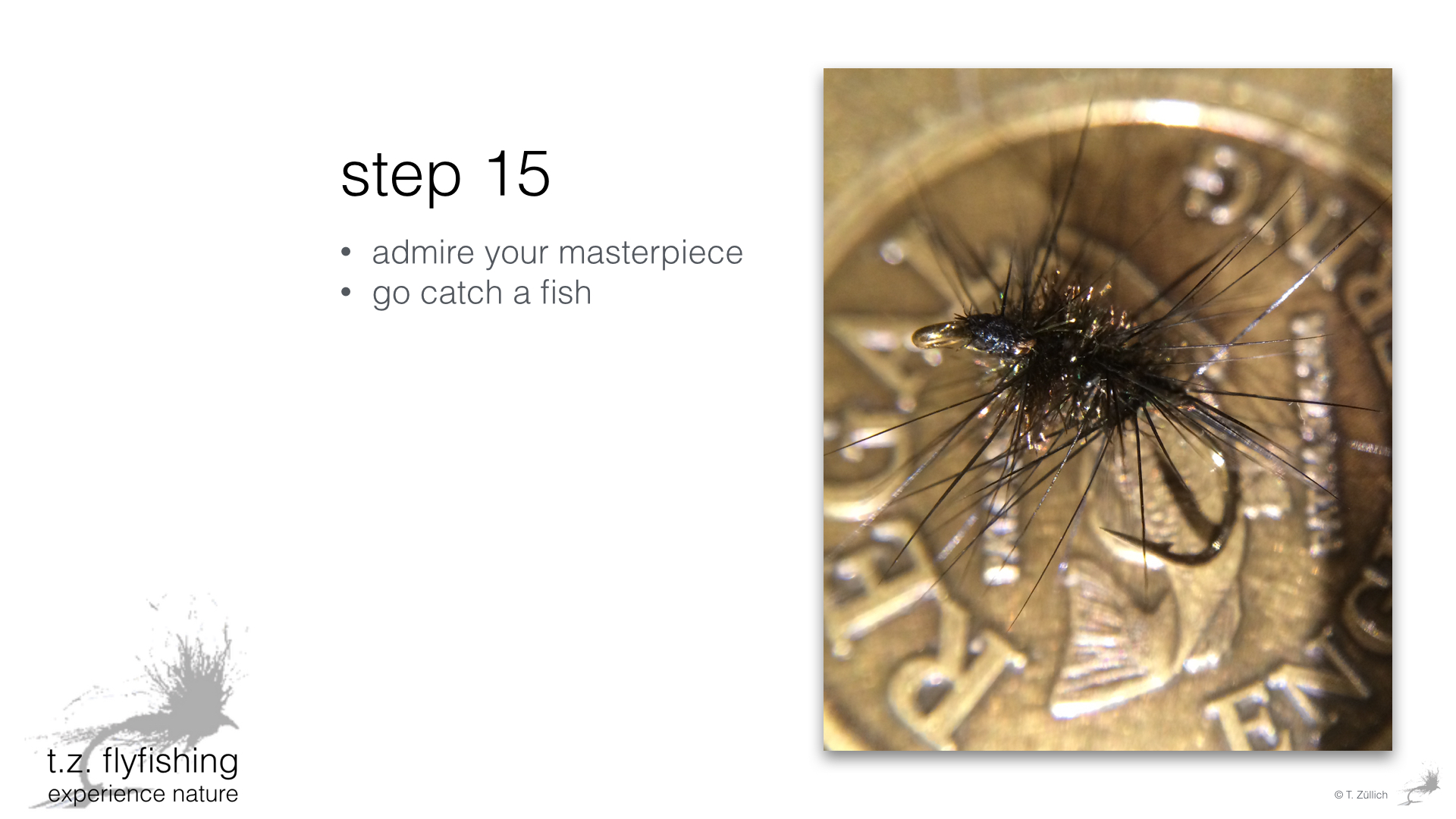 Another method of tying this fly is to tie the peacock herl body first and than wind the hackle feather over it. Works as well, but takes way more time and the result may look neater, but is not anything as sturdy as the version shown here. It would be cool to get some feedback on how you get on with this tutorial. Use the board to post questions.