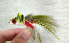 The final shape is, you’ll be unsurprised to read, thin and pointy. These are the fastest ones, great when imitating fleeing bait in open water. They lend themselves especially well to flowing tails of saddle hackle or zonker. and I never give them any appendages in the head. Having less hair they’re slower on the float and depending how you trim the collar and the leader setup can be worked quite deep if you need to. I carry fewer of these than the other two because of the fishing that is largely available to me here, but if I was doing more targeting of fry feeding trout or had more open water bass fishing handy, I’d definitely have more of them in my various boxes.