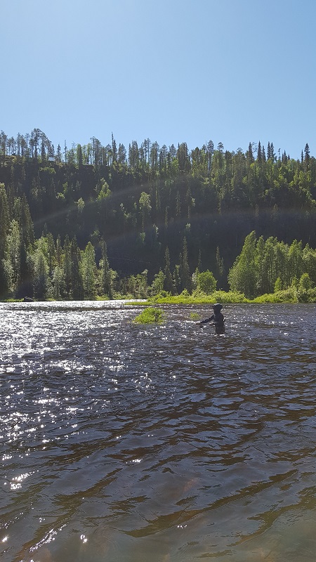Like I told I had few fishing trips this week also. I made guiding in one of my favourite areas on Kitka river. We fished there also with Paul few years ago. On first trip we met some people on parking lot and they were coming back from river. I asked how was fishing but all of them told me that they couldn’t get there because of mosquitos. I went speechless, to be honest I had to go behind the car to laugh. On the way there is about 100 meter of swamp where mosquitos like to stalk innocent people. After swamp you walk another 100 meter and they are gone. One group was brave enough to go all the way to the river, but they had returned from fireplace. Same reason, too many mosquitos. Really people…. We have been on the moon but can’t use repellent against mosquitos. Come on.