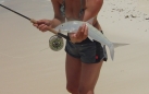 Making notes of unproductive areas is just as important to us as marking where we’ve found fish. Bonefish tend to be creatures of habit, they have a daily (tidal) routine that they stick to given the chance. Tracy and I have waded many miles of flats that were seemingly perfect (plenty of prey items, crabs, clams etc.) but have spotted no fish until we’ve reached a certain spot and then we’ve found lots. If this observation is repeated for a second or third visit, you can be fairly confident that the bones don’t feed in that area for some reason. As such you can choose to walk past it or perhaps fish it at a faster pace than you would normally and hope for a surprise. Either way, you then get to spend more time in the more productive area. A couple of flats we fished last year required an hour’s walk in order to get to the fishy areas, now that perhaps doesn’t sound a lot but in the heat and walking over a mixture of soft sand, lava rock and shell banks whilst carrying all our gear, it’s draining. Our notes reflect this, suggesting we take extra water and make the walk in comfy trainers – these are then hung on a convenient tree before we enter the water in our wading boots (I also wear trousers with zip-off legs for this sort of flat, so I can make the walk in shorts). As an aside, I never wade barefoot – if the bottom is perfect white sand with no shells, rocks or coral to cut (and infect) you then I suspect you’re probably fishing in the wrong place.