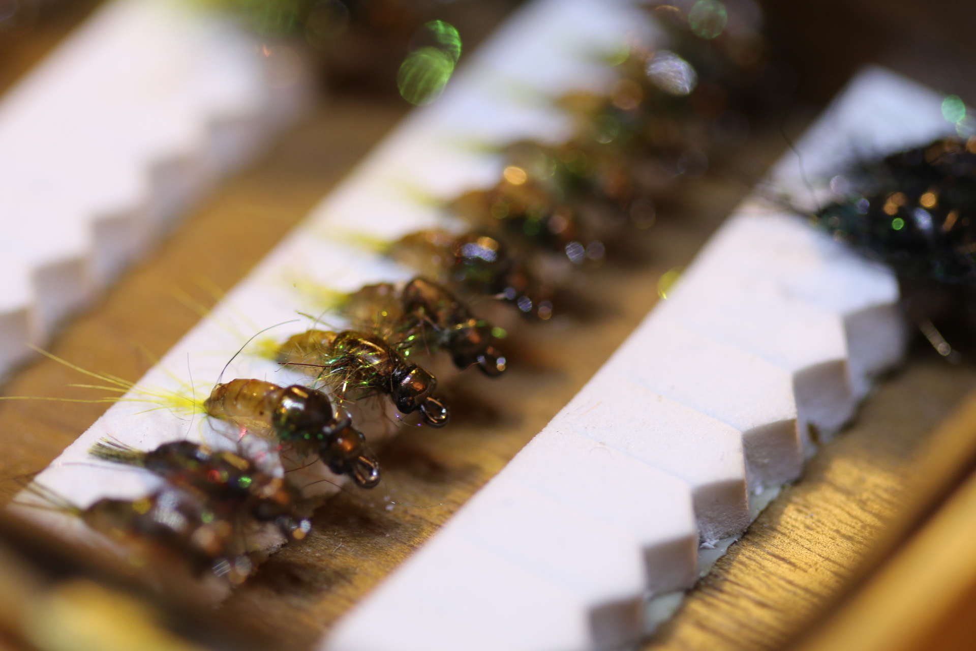Weighting is done with Flymen tungsten nympheads and I will be using quite a bit of the Virtual Nymph Flexibody I was given by Dale, the owner of VN. Brilliant stuff. Dubbing is “peacock” dubbing I got from Jan Siman. For some flies I use seals fur as well.
