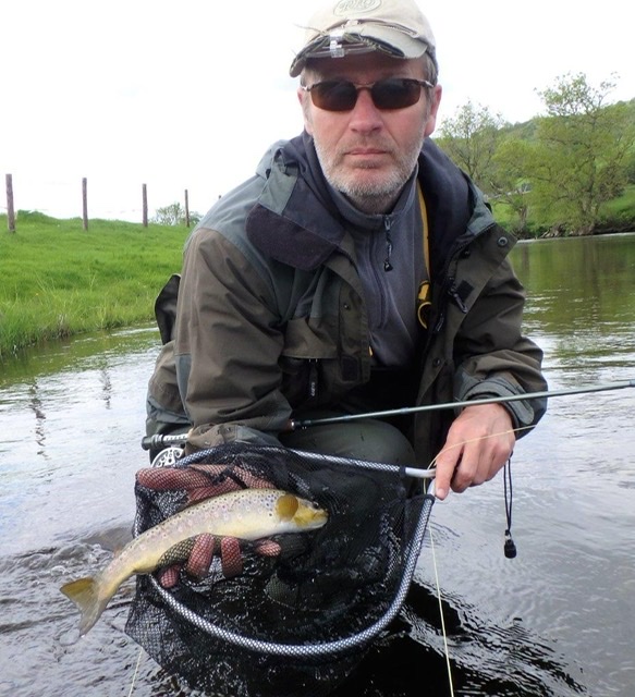 Today Tracy and I fished the Dee, on a beat that we hadn’t got round to fishing before – I’m not sure why not because it was a lovely stretch. We both fished dries all day, starting with our usual drab klinks and then switching to olive patterns as the sun warmed the water. It was great to see the river alive with insects and we both ended with a good number of trout landed and quite a few misses. Both the Dee and Usk trout are very distinctive as you can see in the pictures.