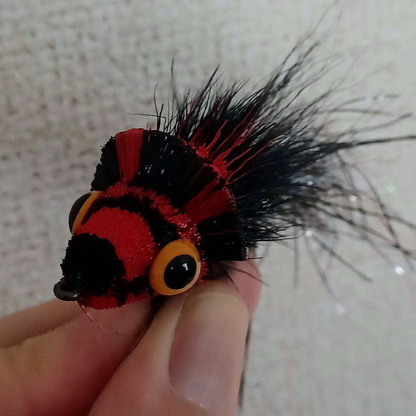 Despite our storm front tubing last week, Chuck and I felt that fishing the first typhoon of the year was probably a bit too much this week. So I spent Monday putting a few mulberry patterns in my box as well as practising a bit more with the hairbugs for my bass box. I did get a bit of fishing in yesterday before work though.