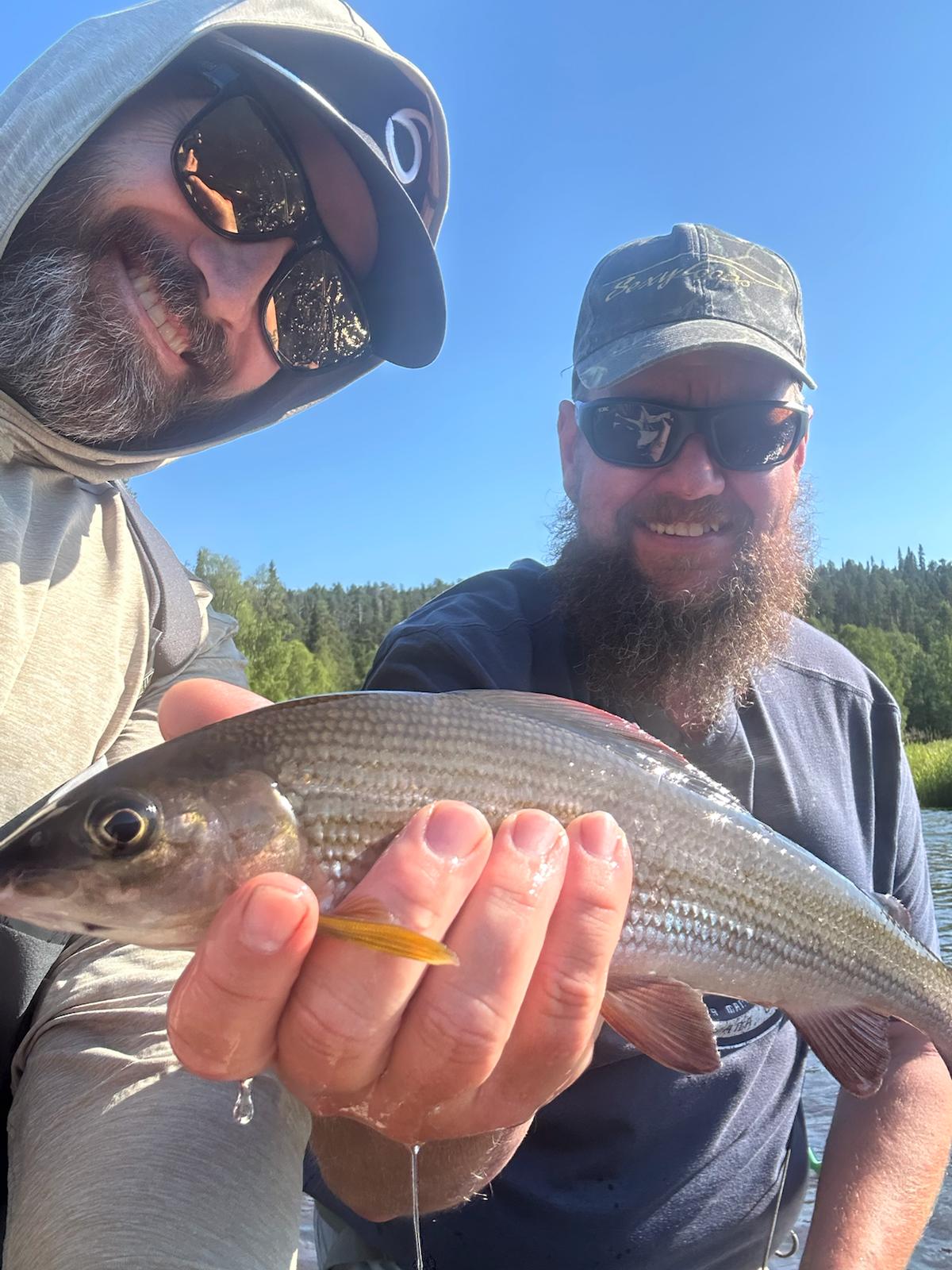 How was fishing? It was good as compared circumstances and he got one really nice grayling and I got two. I got mine more or less by accidentally as I was trying to just show fishing technique as know Mika's grayling dance.