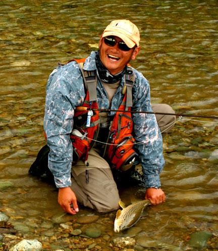 Here's our very own laughing Bhudda, Simon Chu with another fussy tungsten feeder. We found they were being extremely selective and would only look at double-ought buckshot.