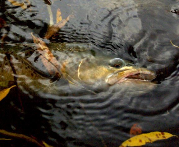 I had on a very skinny and almost worn out DHE, which wasn't maybe the best choice for a spinner feeder, but finally I just gave it a shot from where I stood. He missed seeing the fly and I just picked up and put it back down as quickly as I could. The DHE was pretty sodden and sank like a nymph. It also started to drag immediately. He swam over to it and ate it like it was home cooking. You just never know with trout.