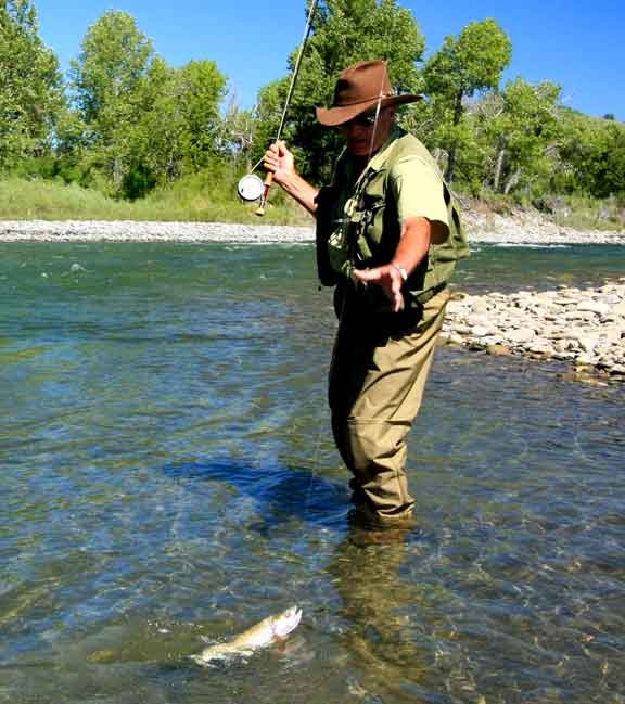 Here's my brother Johnny landing a nice cutty on his new old Sage XP 590. It's old, but new to him because I gave it to him last season after I traded up to a Zed. He's been fishing a old Fenwick HMG he built about twentyfive years ago. A great rod in its time, but compared to the mighty XP it's, well, a good rod. Johnny's no snob, unless you're talking about who's the greatest country singer of all time (hint: it's either George or Tammy, OK?), but he saw the difference in that little XP right off. We might be hard put to describe what difference a really good fly rod makes to a day on the water, but it's real.